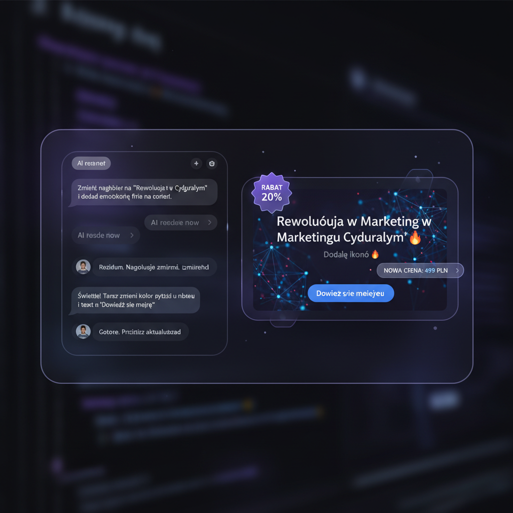 Zapomnij o skomplikowanych formularzach. Po prostu powiedz AI, co chcesz zareklamować, a system automatycznie przygotuje dziesiątki wariantów tekstów i grafik. Zmieniaj je w czasie rzeczywistym, używając naturalnego języka.